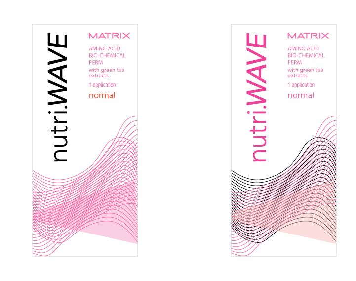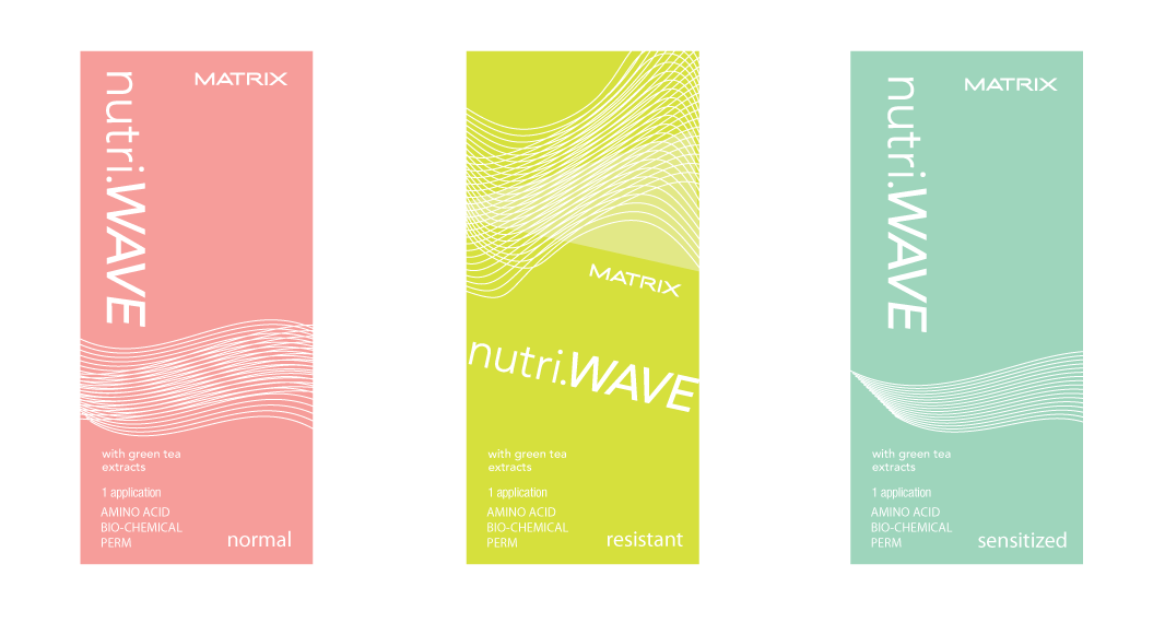 packaging proposals for matrix nutri wave, an amino acid bio-chemical perm product with green tea extracts.